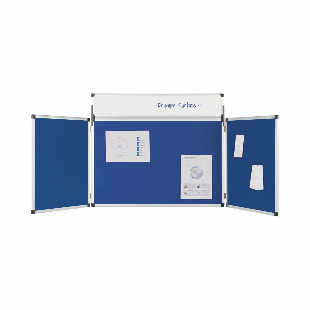DescriptionBi-Office Showboard 3 Panel+Header Blue Nylon 90x60cm DSP350111
