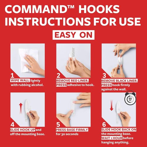 - DAMAGE-FREE DECORATING: Say goodbye to holes or sticky residue on your walls, Command Adhesive Strips by 3M are easy to use and help keep your walls looking beautiful without any marks