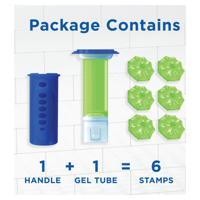 - 1 handle, 1 tube and 6 toilet disc stamps per pack