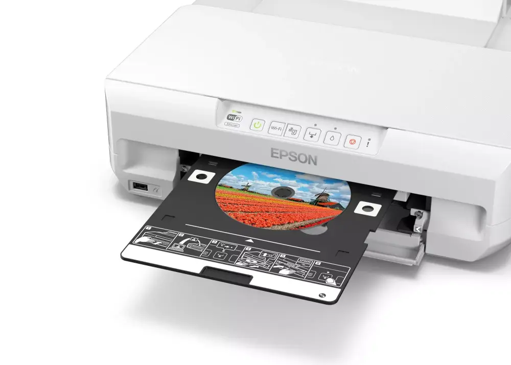 - Prints on a range of media including thick card and CD/DVDs
