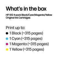 HP 912 Original Ink Cartridge 2.93/8.29-ml CMYK 4-pack 6ZC74AE