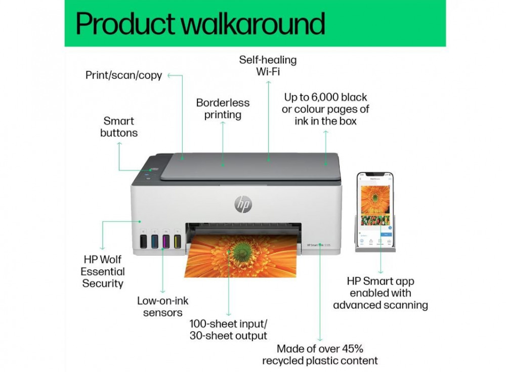 HP Smart Tank 5105 A4 3-in-1 Wireless Colour Inkjet Printer 1F3Y3A#BHC