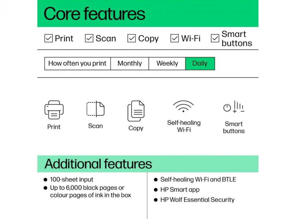 - Wireless; High-volume printer tank; Print from phone or tablet; Scan to PDF