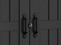 - Wide double doors with padlock hasp