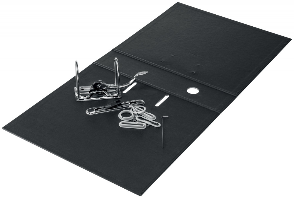 - Light grey recycled plastic thumbhole and rado rings for easy retrieval and to secure the file when closed and upright