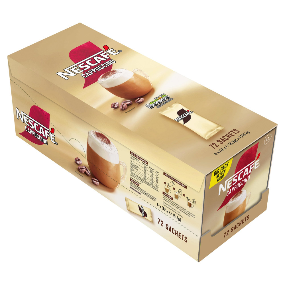 Nescafe Cappuccino Sweetened Coffee Sachets (Pack of 72) 12596949