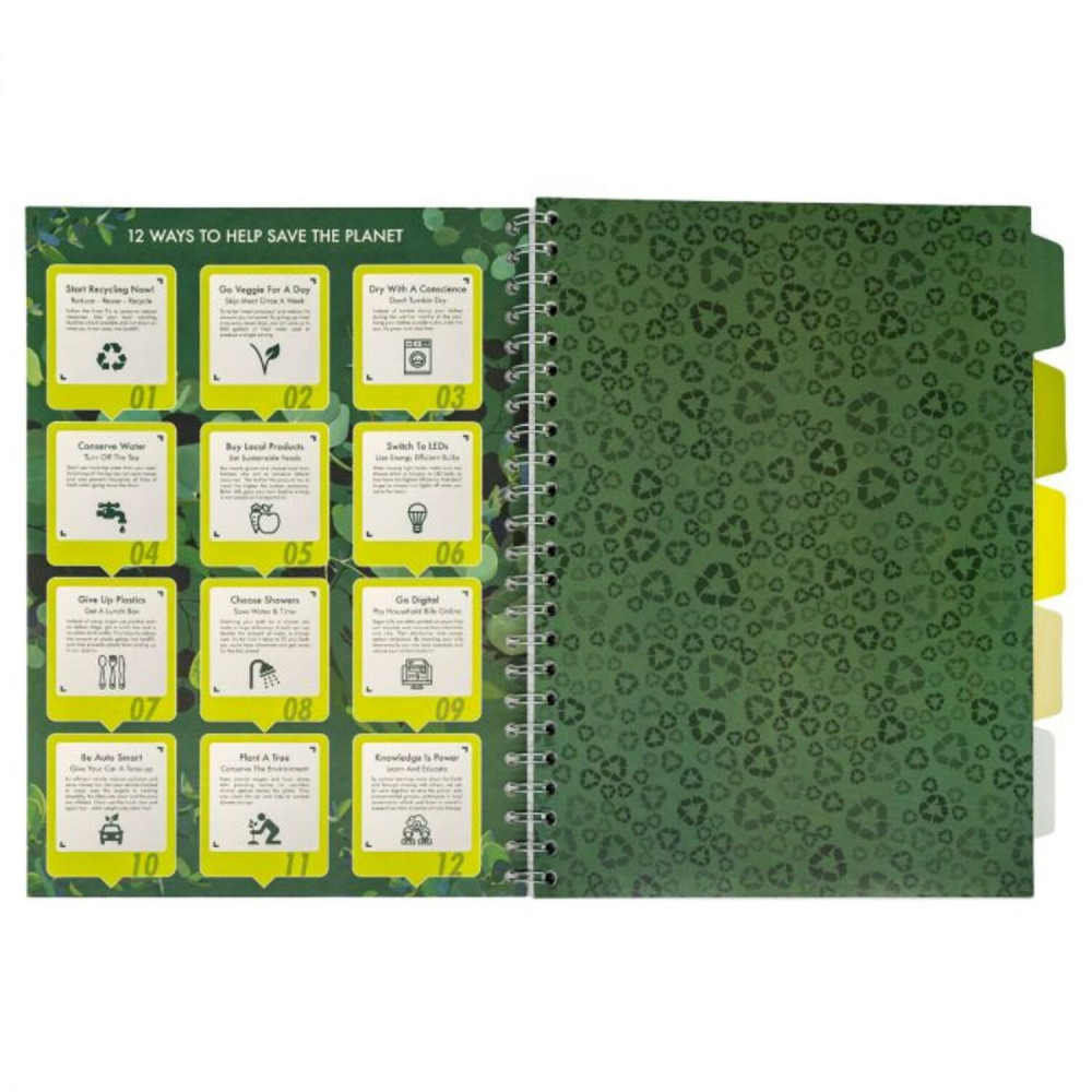 - 12 tips on how to help save the planet printed on inside cover