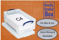 Really Useful 12L Plastic Storage Box with Lid 465x270x150mm C4 Clear 12C