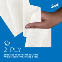 - Embossed Scott® logo and patterns deliver an enhanced appearance and feel to every sheet of toilet paper