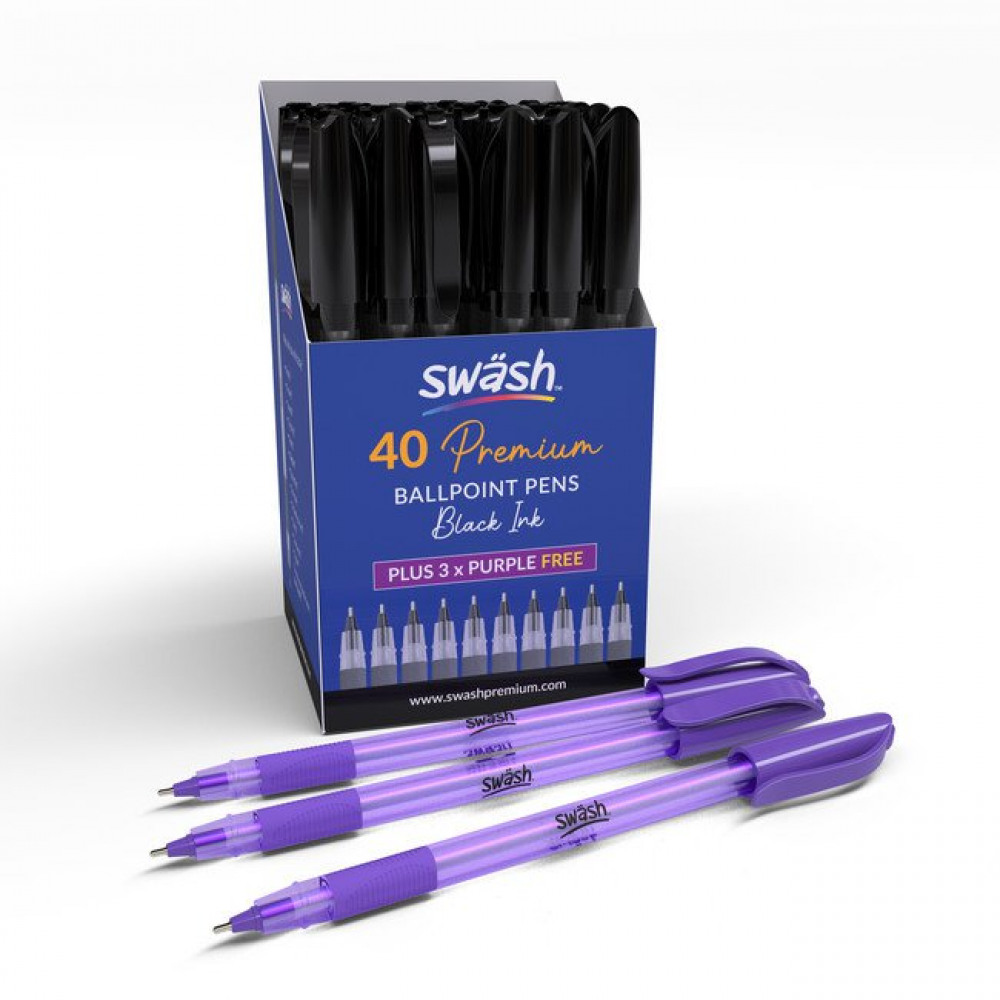 Swash Triangular Ballpoint Pens Rubber-Grip Black (Pack of 40) + 3 Free Purple BBT40BK